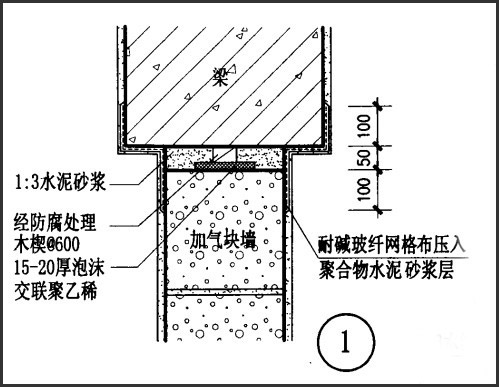 加氣混凝土砌塊設(shè)備網(wǎng)看圖來(lái)說(shuō)明不同材料交界處構(gòu)造和防裂處理方法