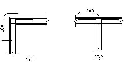 3 支承在懸臂板上的抗裂柱,與梁同標(biāo)高部位應(yīng)與梁同時(shí)安裝模板、鋼筋和澆筑混凝土,如圖3.6.1節(jié)點(diǎn)①、②所示。