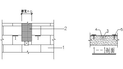注:1、1—砌體;2—耐堿玻纖網(wǎng);3—暗埋管;4—填充砂漿;5—鋼釘