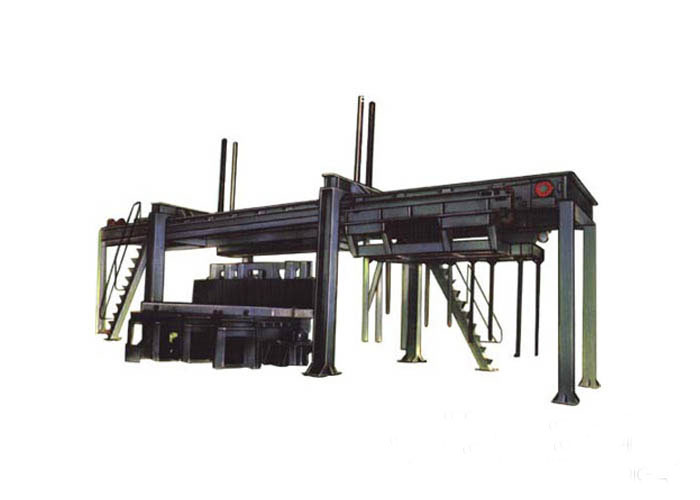 在加氣混凝土設備砌塊切割工藝中,翻轉(zhuǎn)吊具將模具凌空翻轉(zhuǎn)90度后脫模將坯體及側板一同至于切割臺上,啟動縱向切割裝置的行走電機對坯體進行側面切及 上、下水平分層階梯切割,在切割后行走至暫停位置,橫向切割裝置通過電機帶動行走至切割位后,啟動橫切架上、下垂直工作電機,橫切家自上而下,此時,擺動 電機啟動,并對坯體進行雙向交錯拉鋸式擺動,從而對批體進行上下垂直切割。在橫切架復位后(即切割完畢),橫向切割裝置繼續(xù)前行至暫停位。(待切割好的坯 體及側板經(jīng)半成品吊具吊至蒸養(yǎng)小車,進行編組入釜蒸養(yǎng)出成品。)橫向縱向切割裝置行至初始位置。以此類推,周而復始,從而實現(xiàn)對坯體的切割。 |