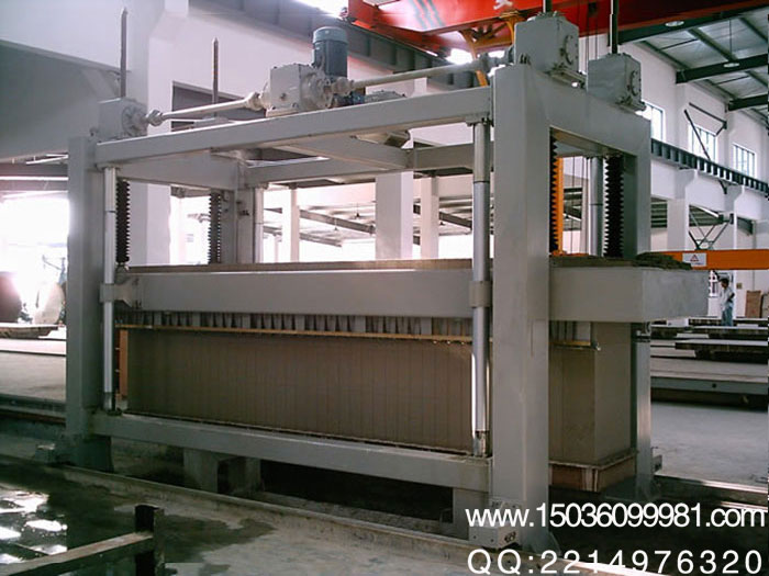 切割機(jī)工作原理: 翻轉(zhuǎn)吊具把模具帶坯體一起空中翻轉(zhuǎn)90度置切割小車上,脫模把坯體連同側(cè)板留在切割小車上,切割小車由電機(jī)作動(dòng)力行走,通過縱切裝置完成縱向切割、銑槽、水平切割;切割小車?yán)^續(xù)行走至橫切裝置中央位置停止后,橫切裝置啟動(dòng),橫切架自上而下垂直下切完成橫向切割;切割小車再行走至編組吊具處由編組吊具將坯體(連側(cè)板)吊至蒸養(yǎng)小車上,切割小車返回原始位置進(jìn)行下一個(gè)切割循環(huán)。 切割機(jī)主要特點(diǎn): ⑴、 機(jī)型結(jié)構(gòu)精簡實(shí)用,便于安裝維修; ⑵、 坯體側(cè)立放置使坯體寬度為600mm,高度為1200mm,切割鋼絲短,不易拉斷,不易飄移,切割精度高; ⑶、 縱向切割裝置固定,切割小車行走完成縱向切割,切割時(shí)間短。橫切裝置采用鋼絲水平下切,縮短切割鋼絲長度,保證切割精度; ⑷、 坯體側(cè)立后可縱向切割時(shí)完成銑槽,不需另配槽口加工設(shè)備; ⑸、 本機(jī)型對坯體作六面切割,制品質(zhì)量不受模油及模具變形影響; ⑹、 本機(jī)型除生產(chǎn)砌塊外還可生產(chǎn)板材; ⑺、 機(jī)型切割過程(翻轉(zhuǎn)、縱切、橫切)分不同工位完成,各工位工作簡化,操作保養(yǎng)方便。 |